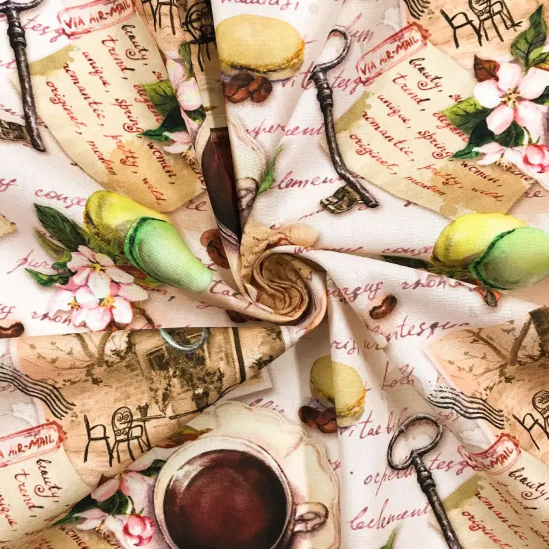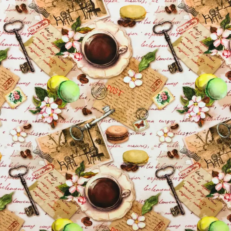 Tricoline Digital - Café Postal - 100% Algodão - Variante 1