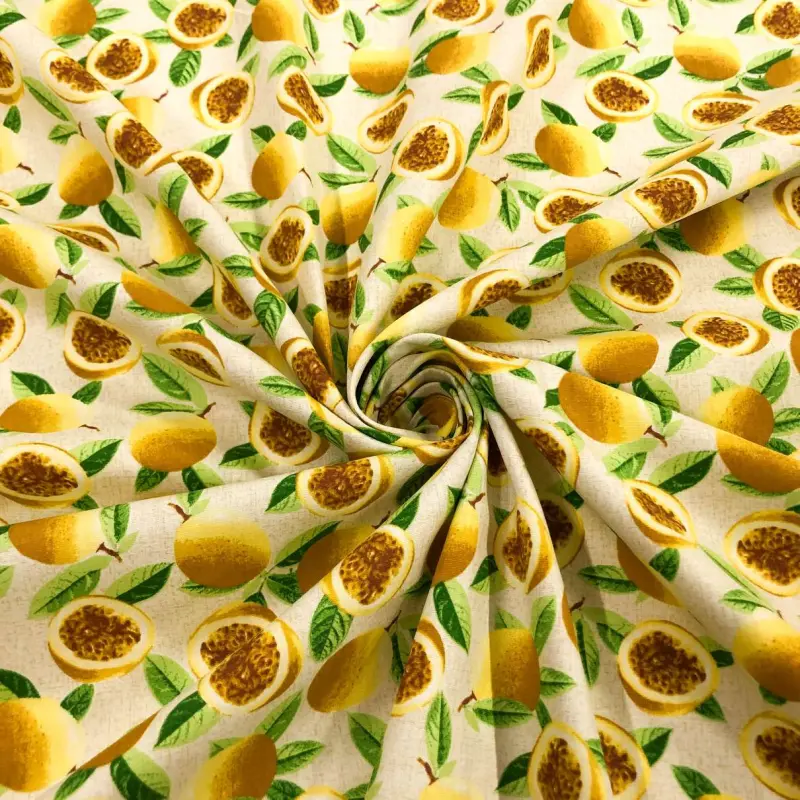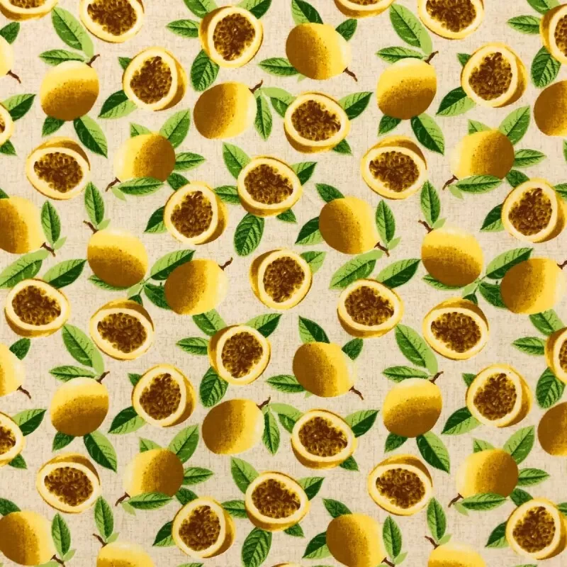 Tricoline Estampada Caldeira Maracujá 100% Algodão 1,50M Largura - Bege