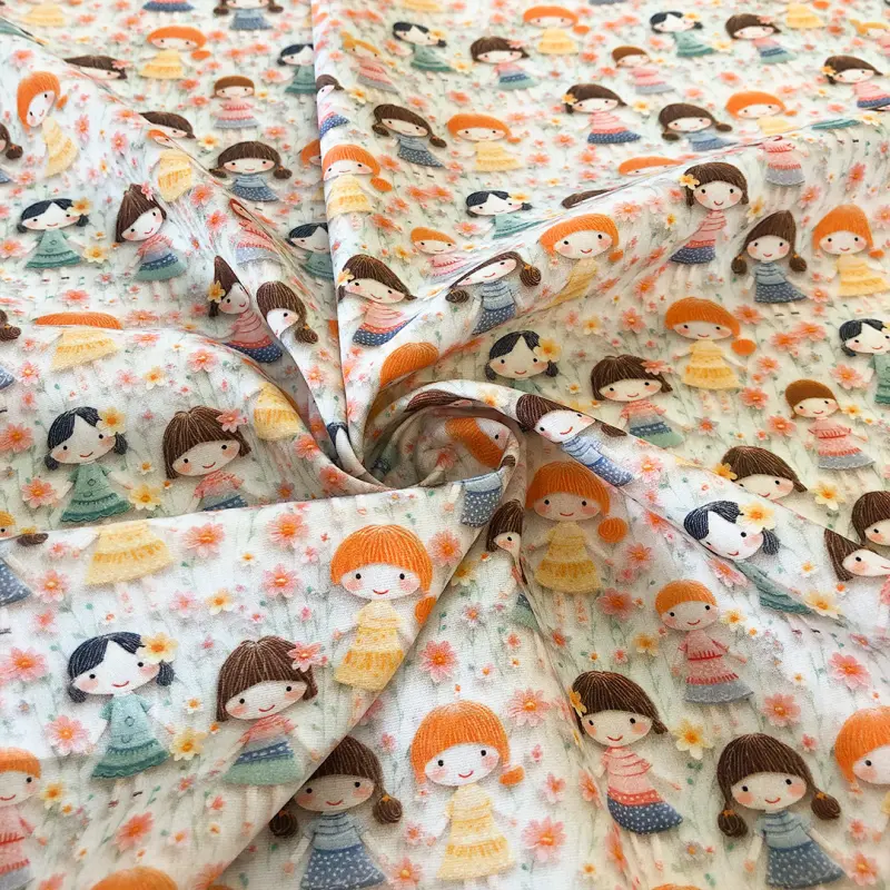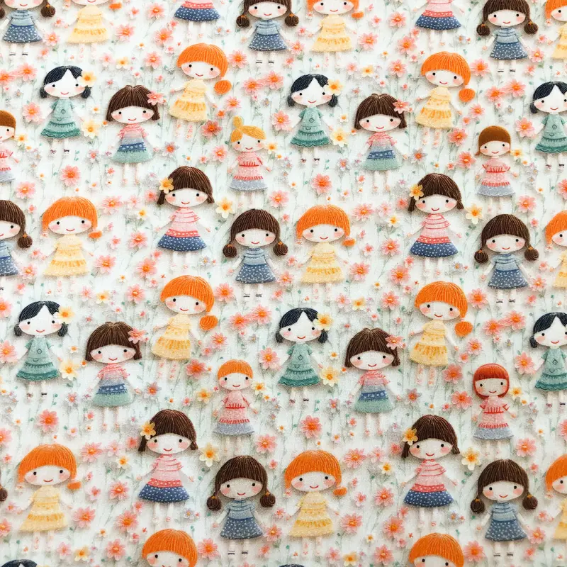 Tricoline Digital Fabricart Meninas No Jardim Rosinha 100% Algodão 1,50M Largura - Variante 1
