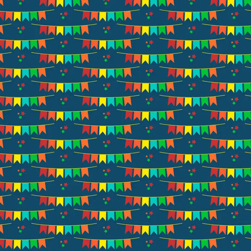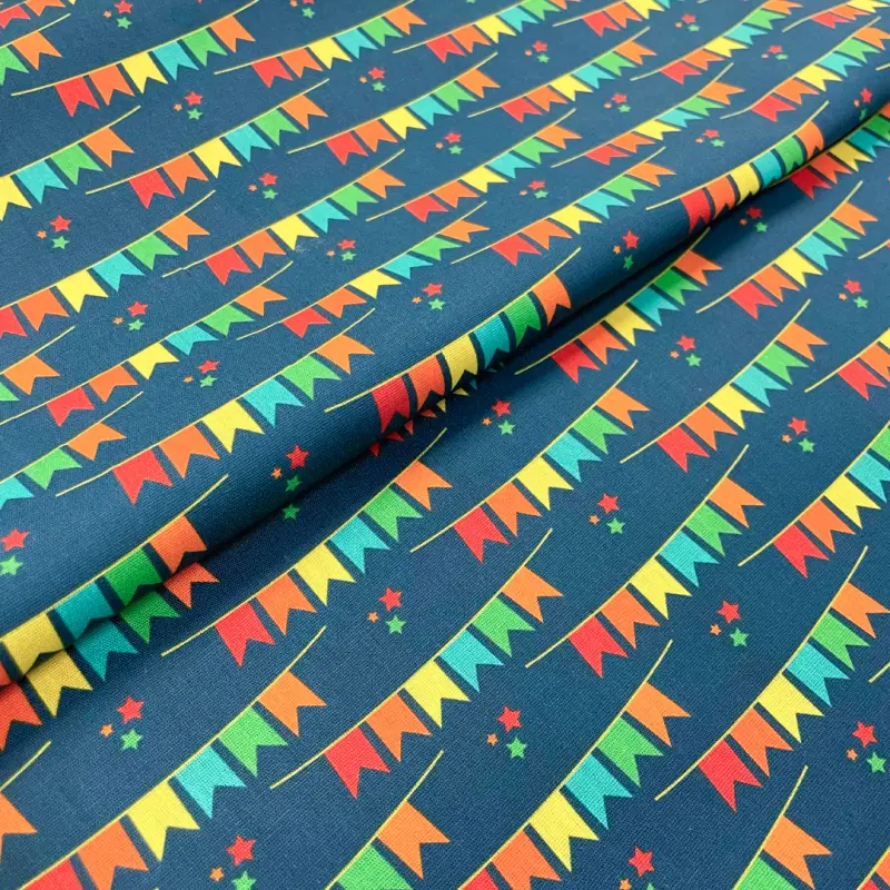Tricoline Estampada Bandeirinhas Fundo Azul Marinho 100% Algodão 1,50M Largura - Variante 1