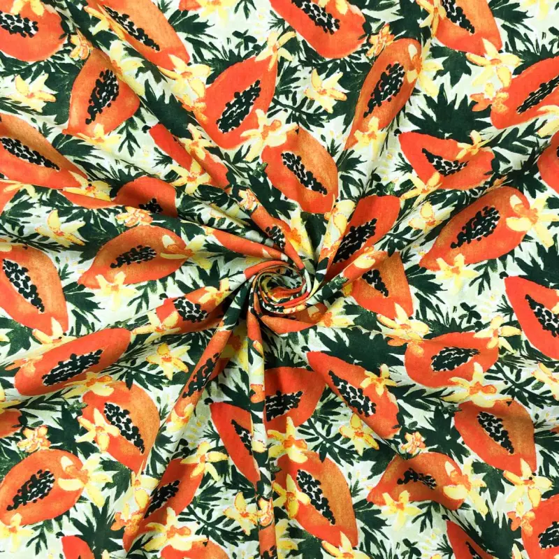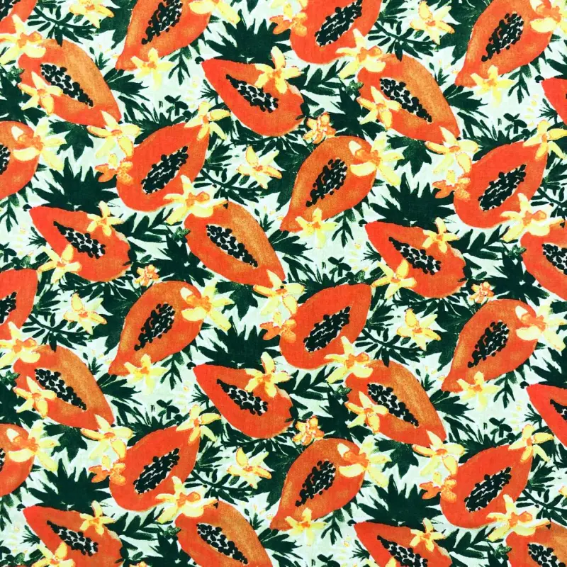Tecido Tricoline - Mamão Aquarelado - 100% Algodão - 1,50M Largura - Variante 1