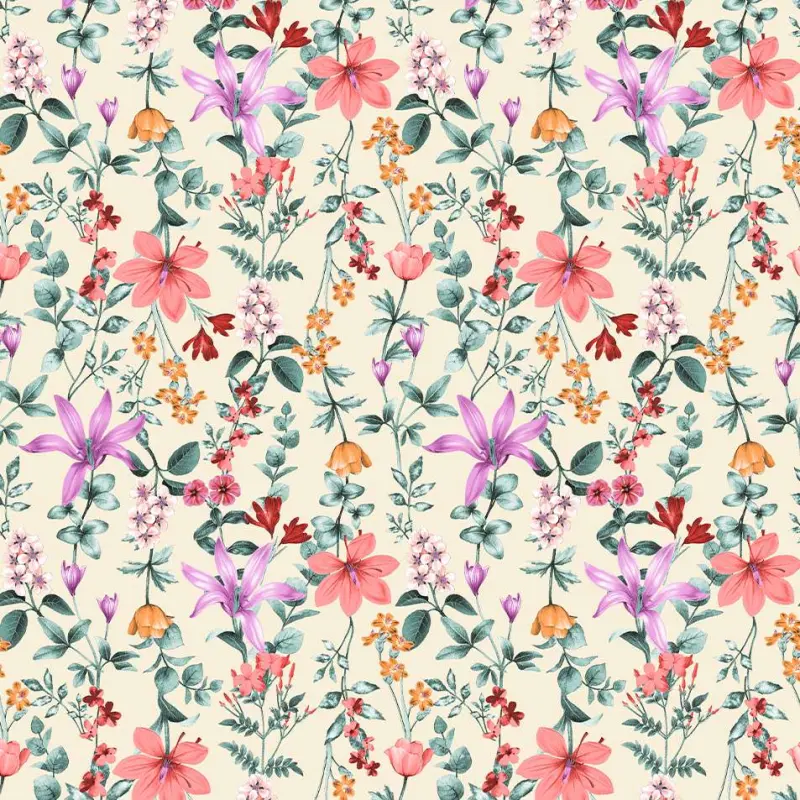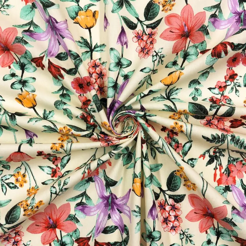 Tricoline Estampada - Ramos Flores Fundo Creme - 100% Algodão - 1,50M Largura - Variante 1