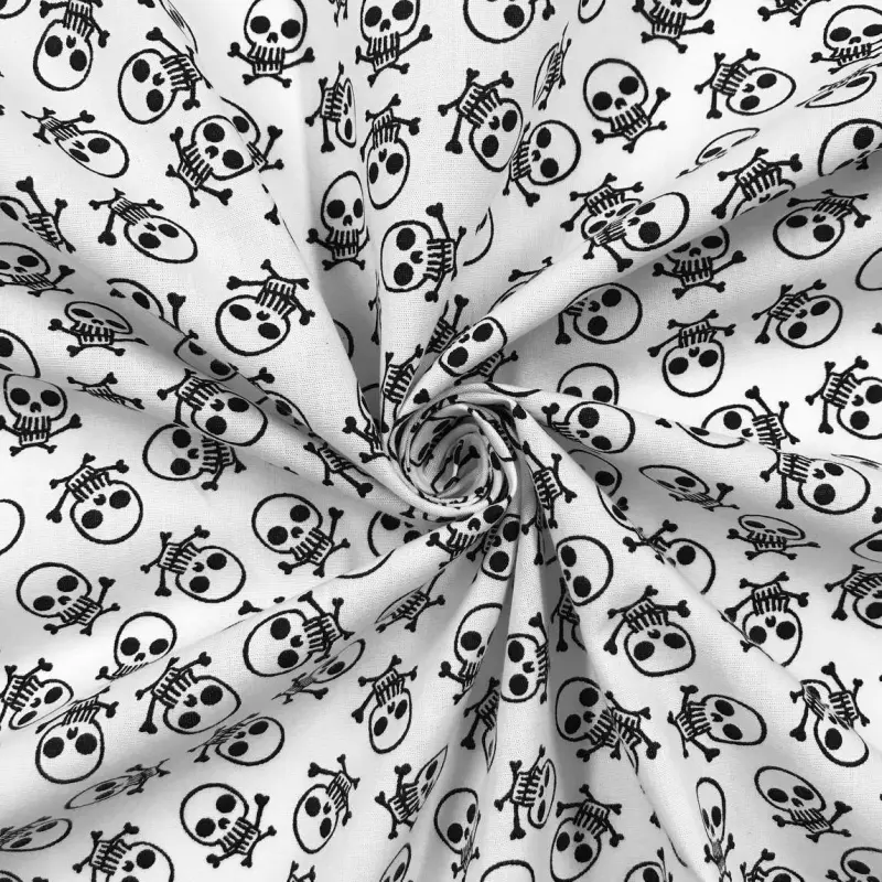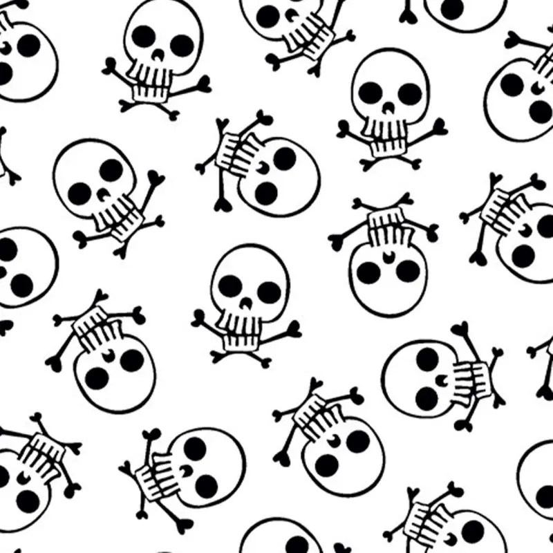 Tricoline Estampada - Caveira Fundo Branco - 100% Algodão - 1,50 Largura - Variante 1