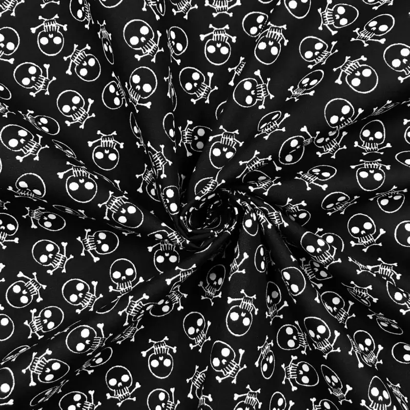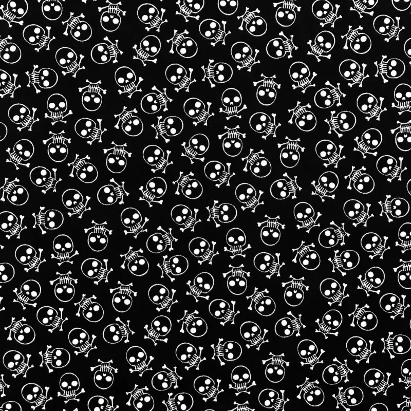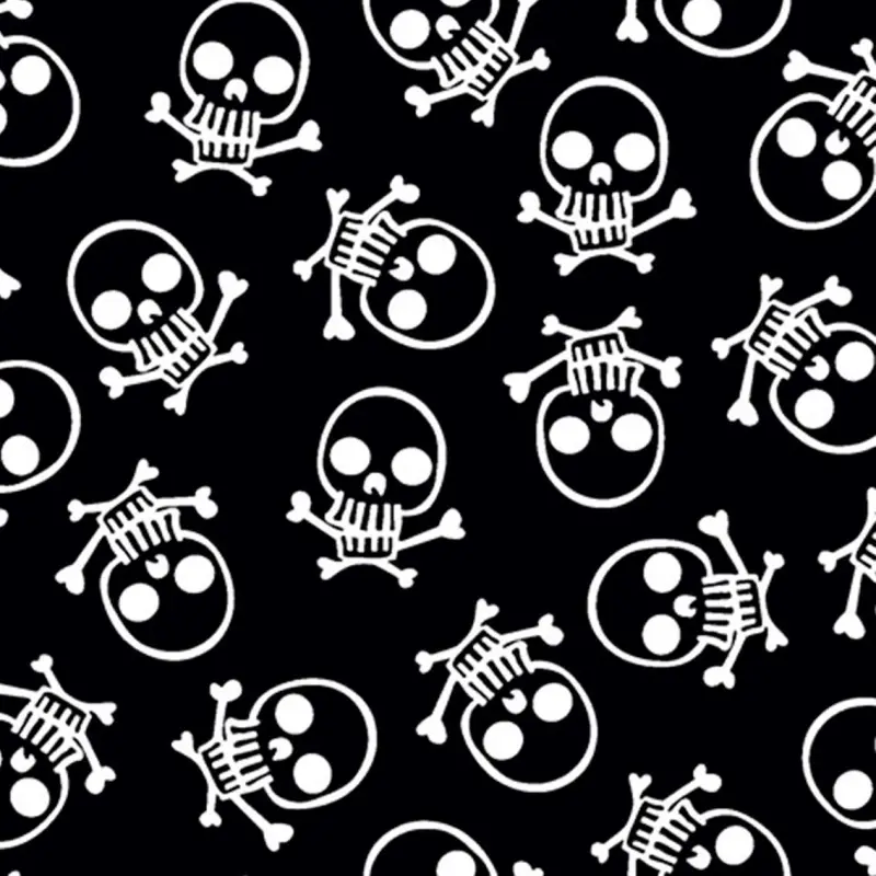 Tricoline Estampada - Caveira Fundo Preto - 100% Algodão - 1,50M Largura - Variante 1