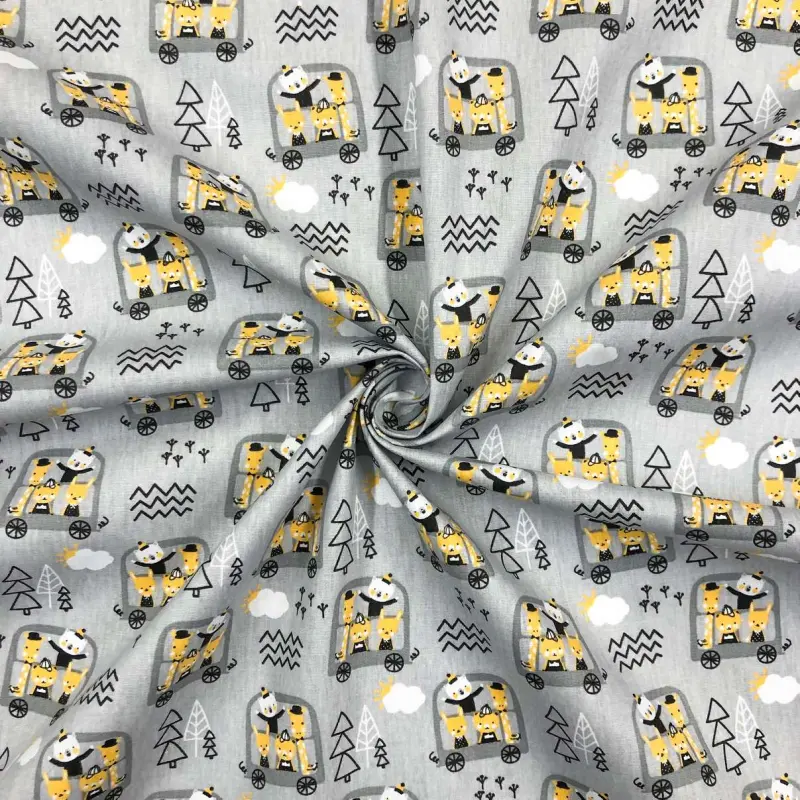 Tricoline Estampada - Trenzinho Dos Animais - 100% Algodão - 1,50M Largura - Variante 1