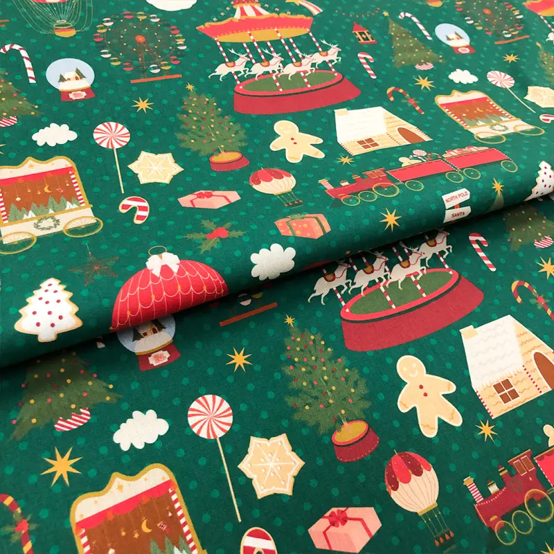 Tricoline Estampada Natal Brinquedos Natalinos 100% Algodão 1,50M Largura - Variante 1