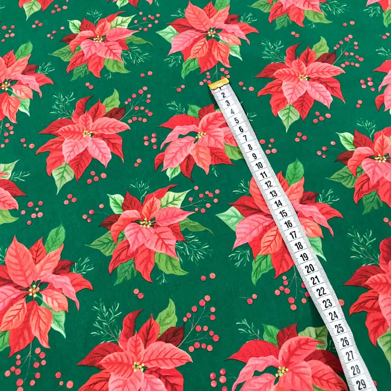 Tricoline Estampada Natal Flor Com Azevinho 100% Algodão 1,50M Largura - Variante 1