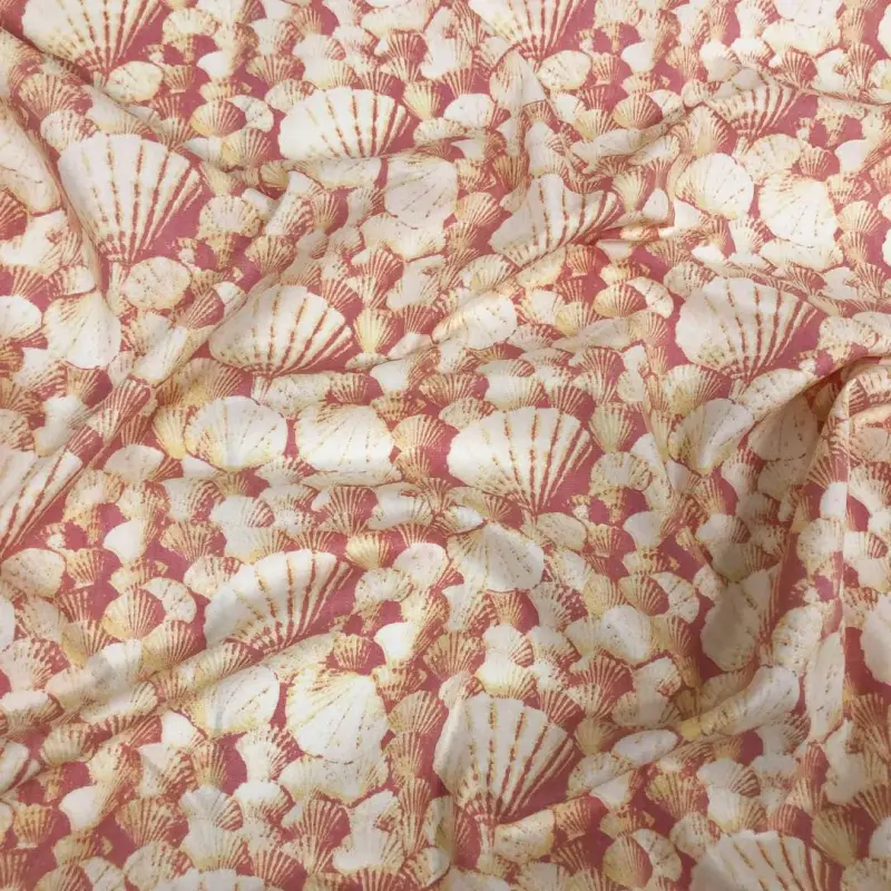 Tecido Tricoline Estampada Conchas Do Mar 100% Algodão 1,50M Largura - Variante 1
