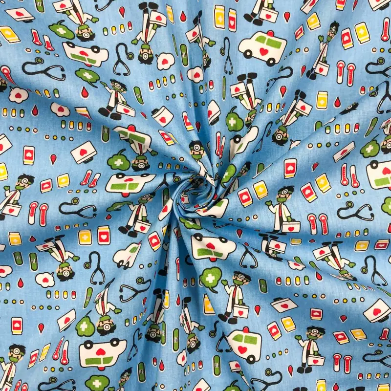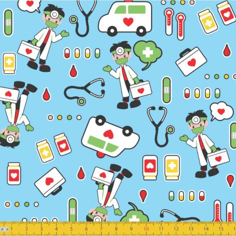 Tecido Tricoline - Médico E Enfermeiro S.o.s - 100% Algodão - 1,50M Largura - Variante 1