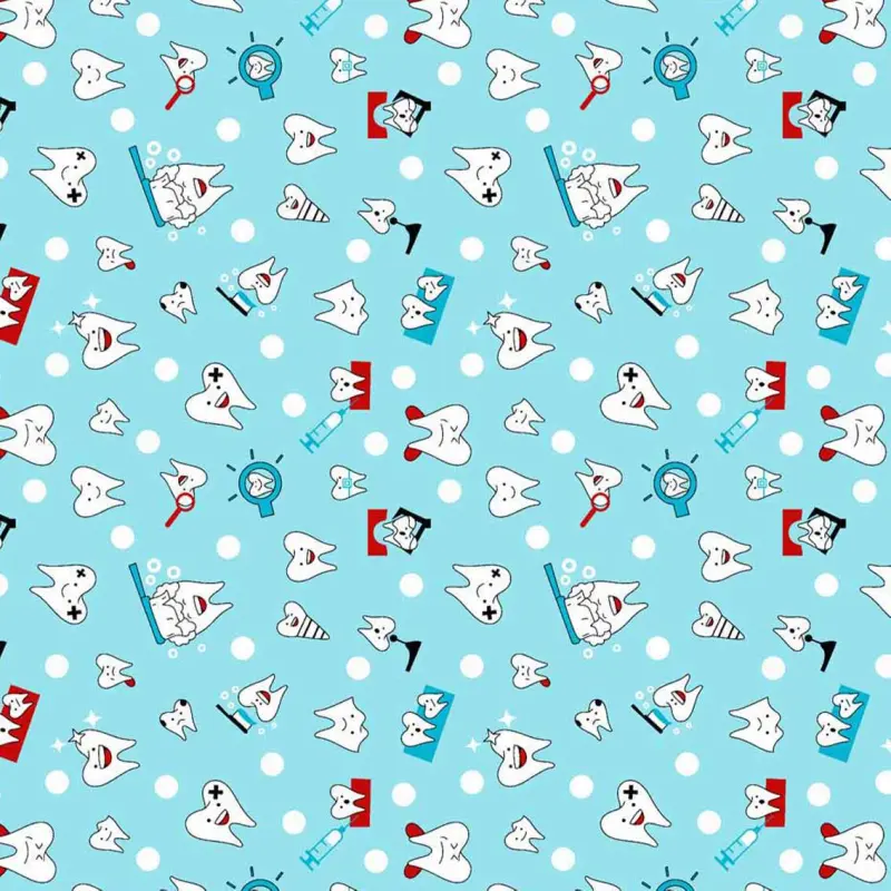Tricoline Estampada - Dentista Azul - 100% Algodão - 1,50M Largura - Variante 1