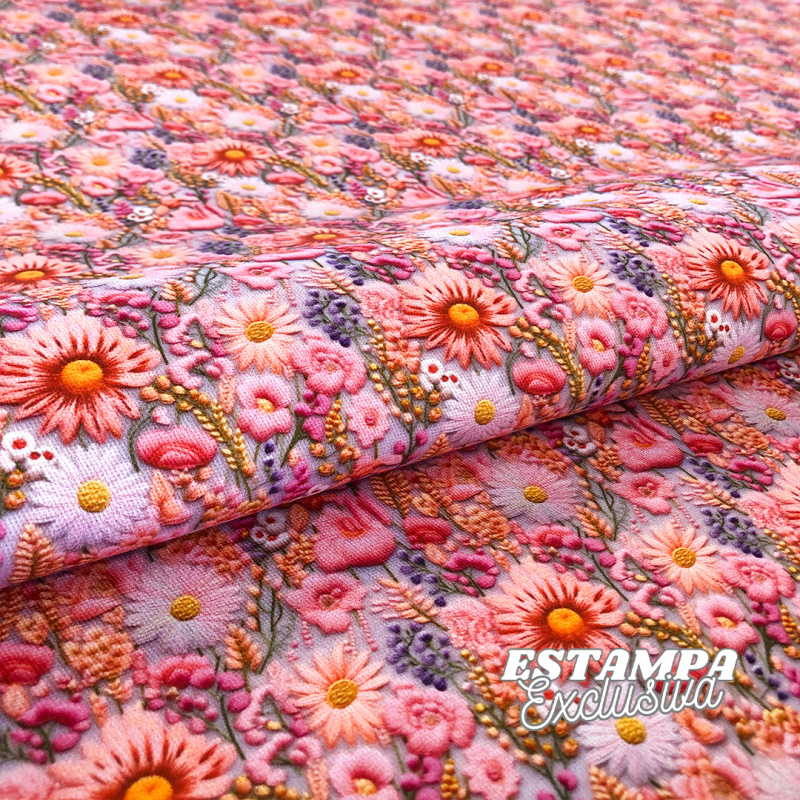 Sarja Impermeável Exclusiva Coleção Dimensões Florais 100% Algodão 1,50M Largura - Sweet Pink