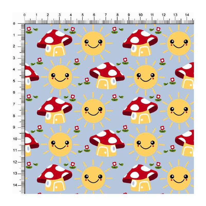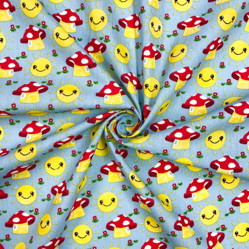 Tecido Tricoline Estampado - Sol E Cogumelos - 100% Algodão - 1,50M Largura - Variante 5