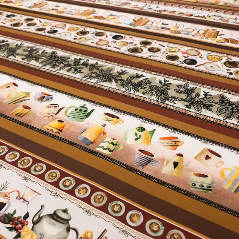 Painel Tricoline Digital Barrado Café Da Manhã 0,55 X 1,50M 10 Faixas - Variante 1