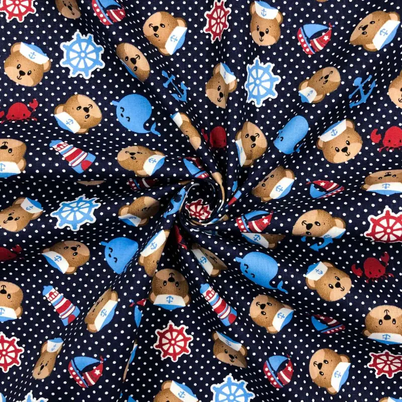 Tecido Tricoline - Teddy Marinheiro - 100% Algodão - 1,50M Largura - Variante 1
