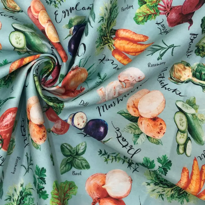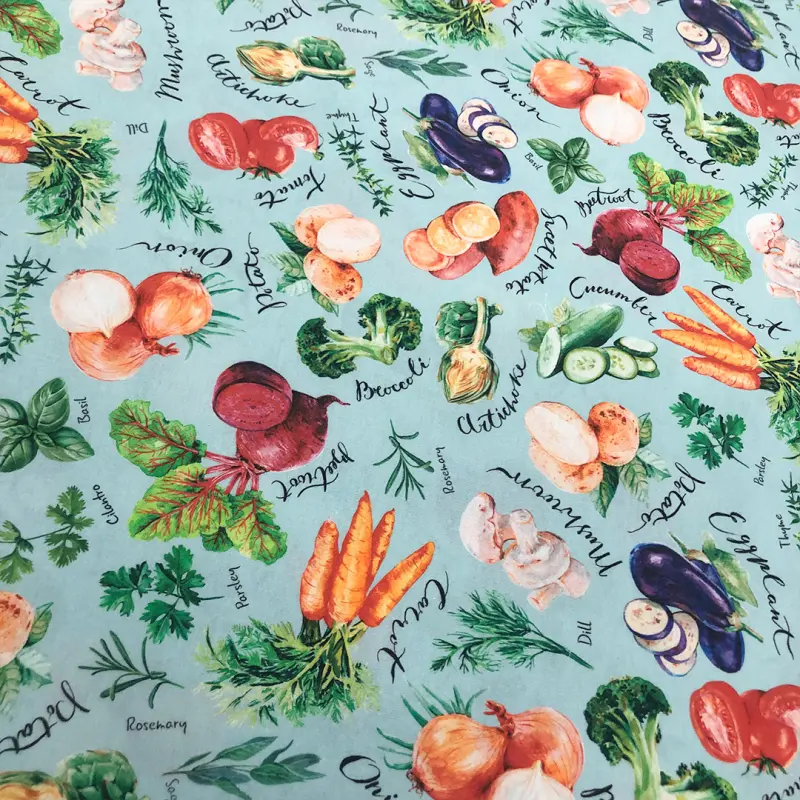 Tricoline Digital Legumes Fundo Azul 100% Algodão 1,50M Largura - Variante 1