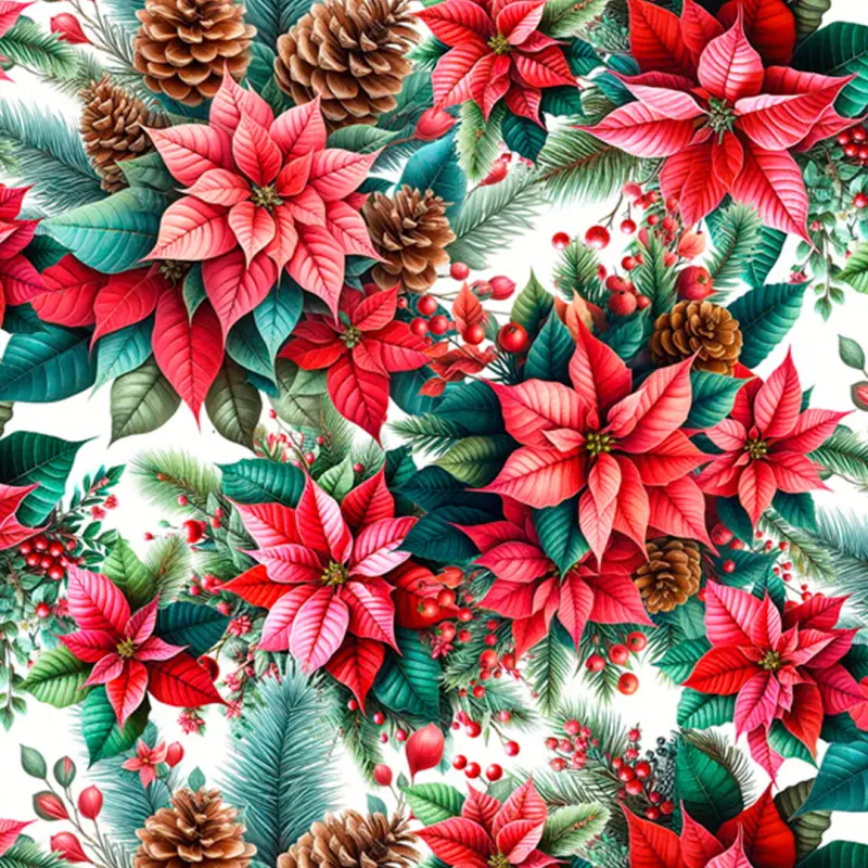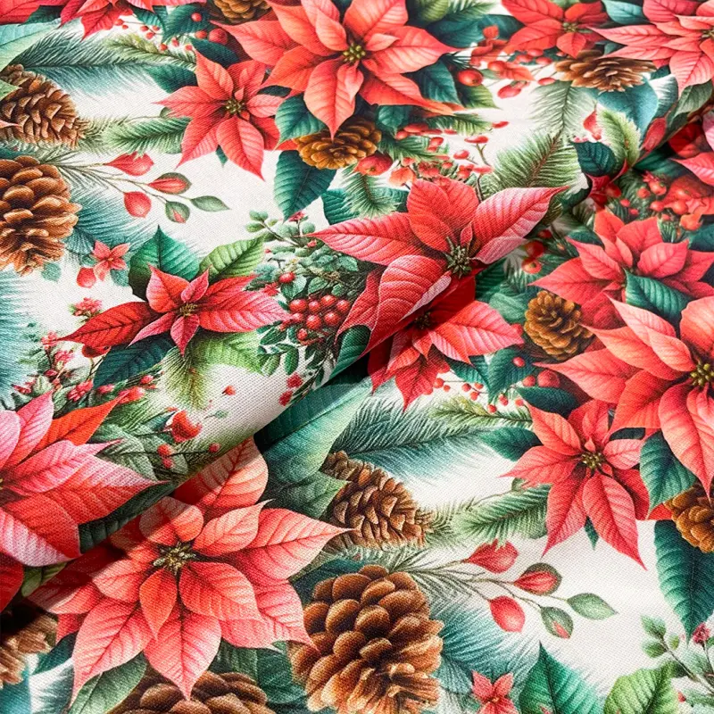 Tricoline Digital Fernando Maluhy Natal Flores E Pinhas 100% Algodão 1,50M Largura - C01