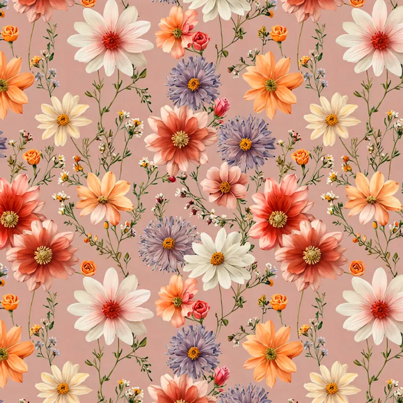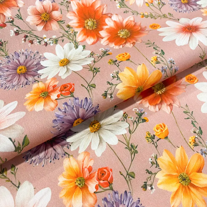 Tricoline Estampada Flores Fundo Rosê 100% Algodão 1,50M Largura - Variante 1