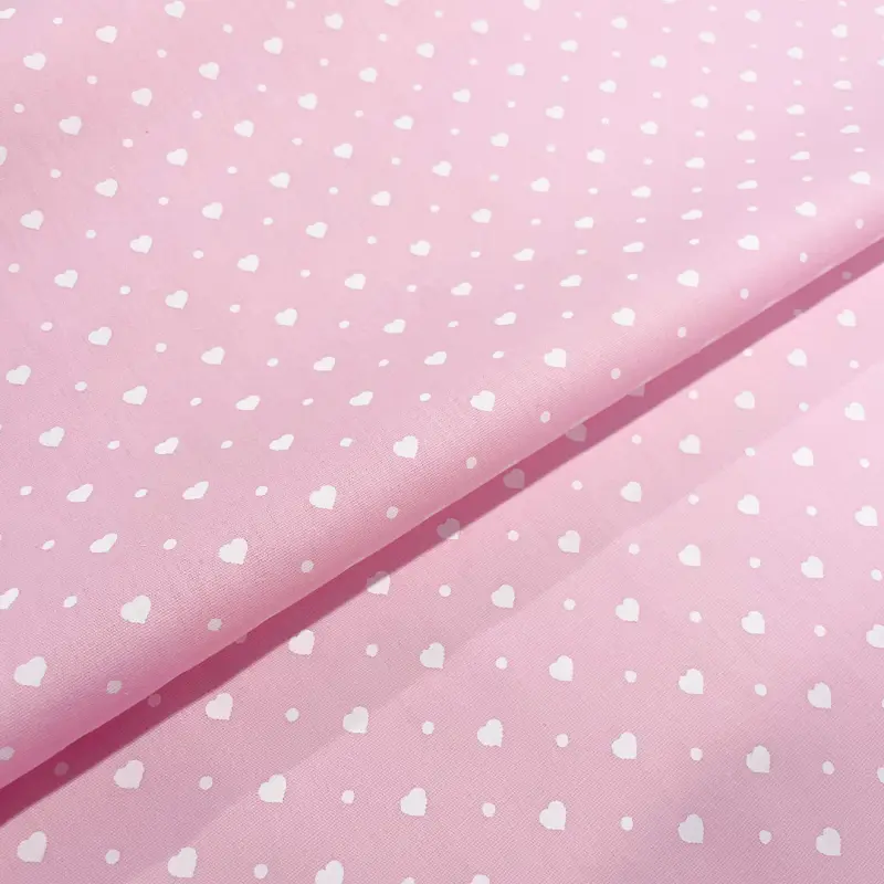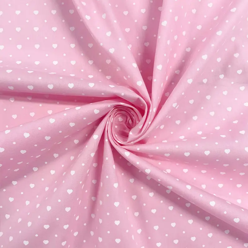 Tricoline Estampada Mini Corações Com Poá 100% Algodão 1,50M Largura - Rosa Bebê