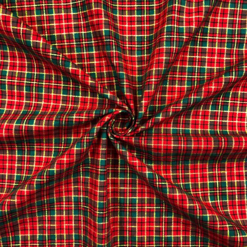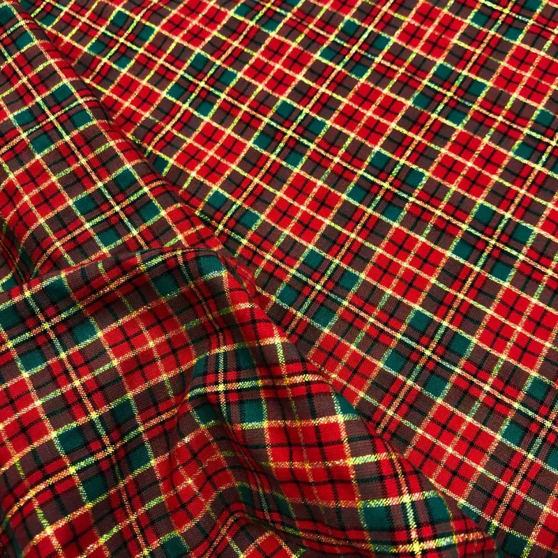 Tricoline Natal Xadrez Fio Tinto Com Lurex Dourado 100% Algodão - Rena 1028