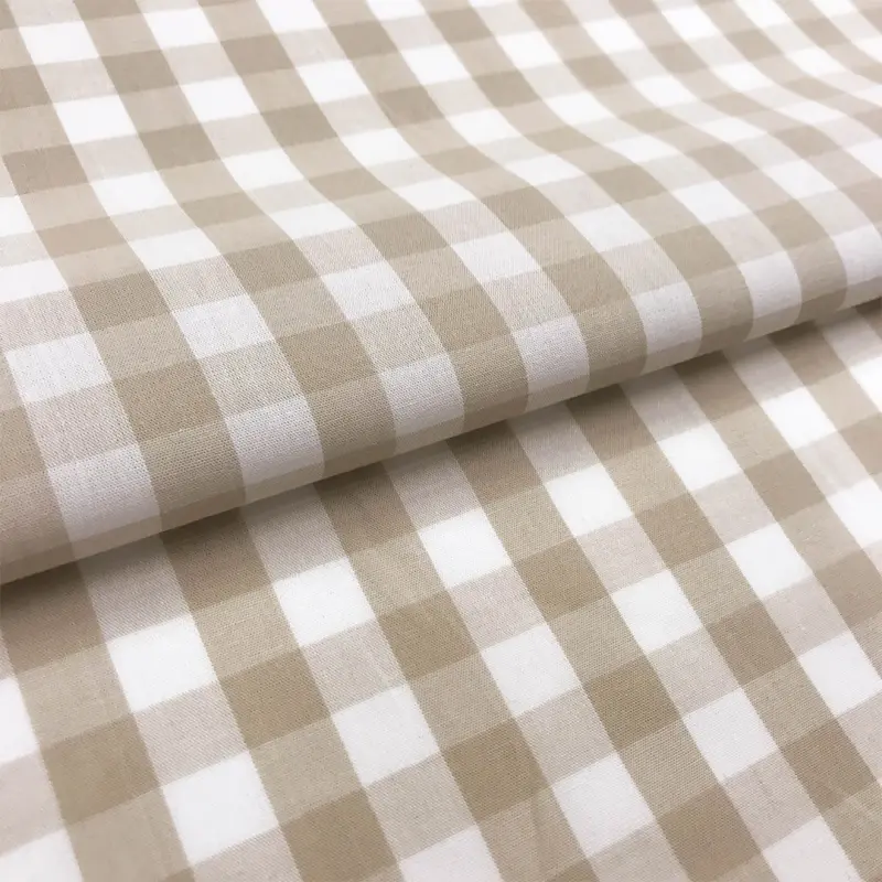Tricoline Xadrez Fio Tinto - Extra Grande - 100% Algodão - Bege Escuro