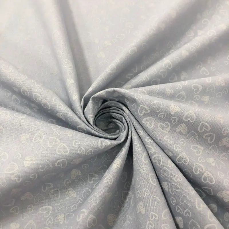 Tecido Tricoline - Coração Desenhado - 100% Algodão - 1,50M Largura - Cinza