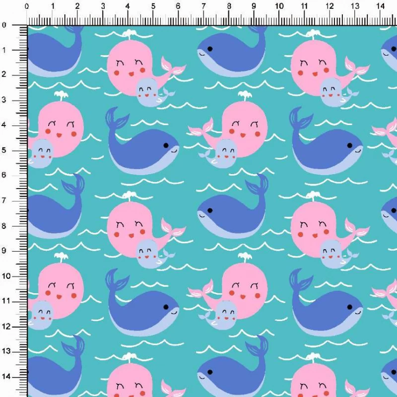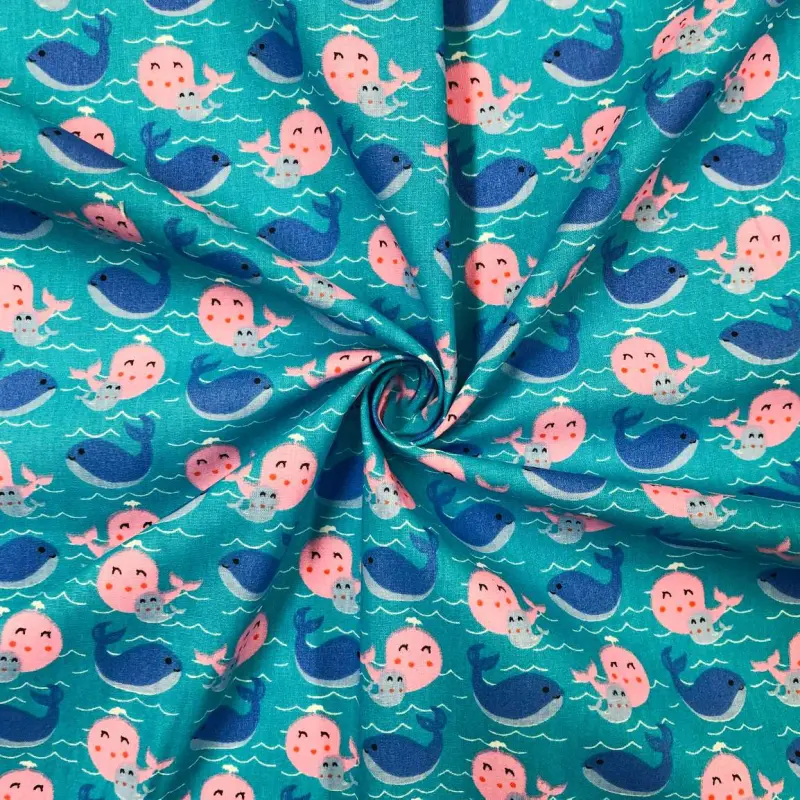 Tecido Tricoline Estampado - Baleia - 100% Algodão - 1,50M Largura - Variante 4