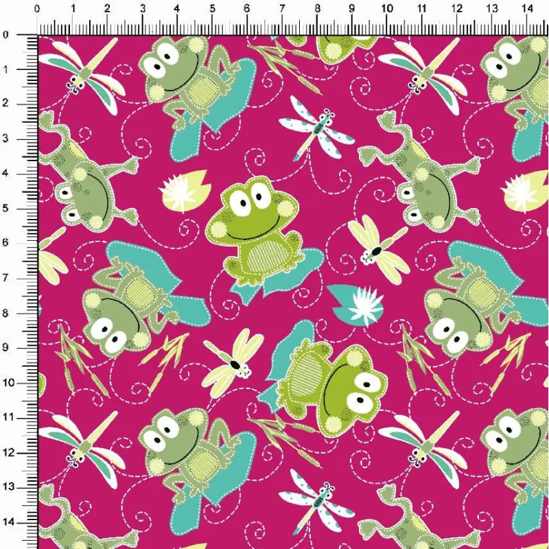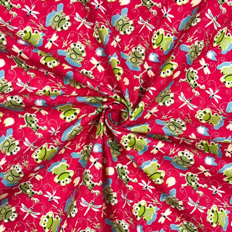 Tecido Tricoline Estampado - Sapo E Libélula - 100% Algodão - 1,50M Largura - Variante 5