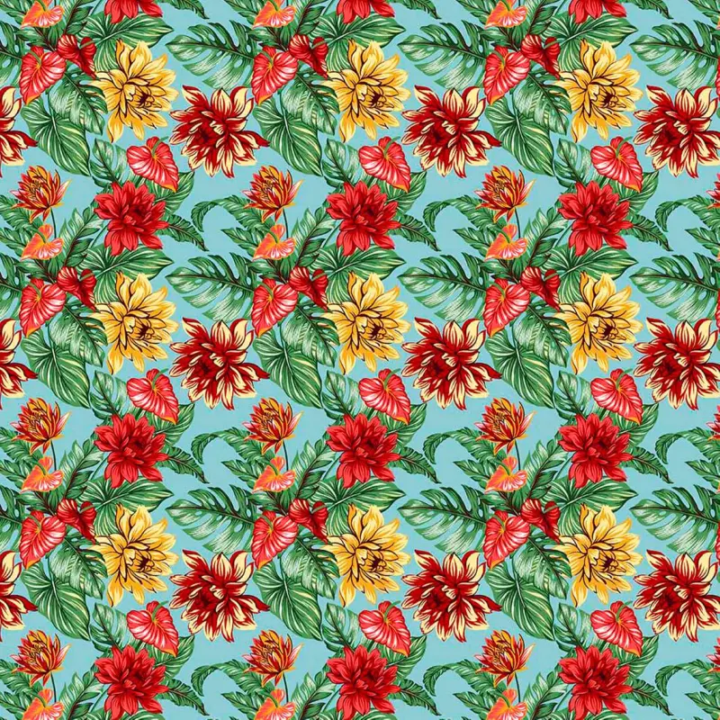 Tricoline Estampada - Tropical Fundo Azul - 100% Algodão - Variante 1