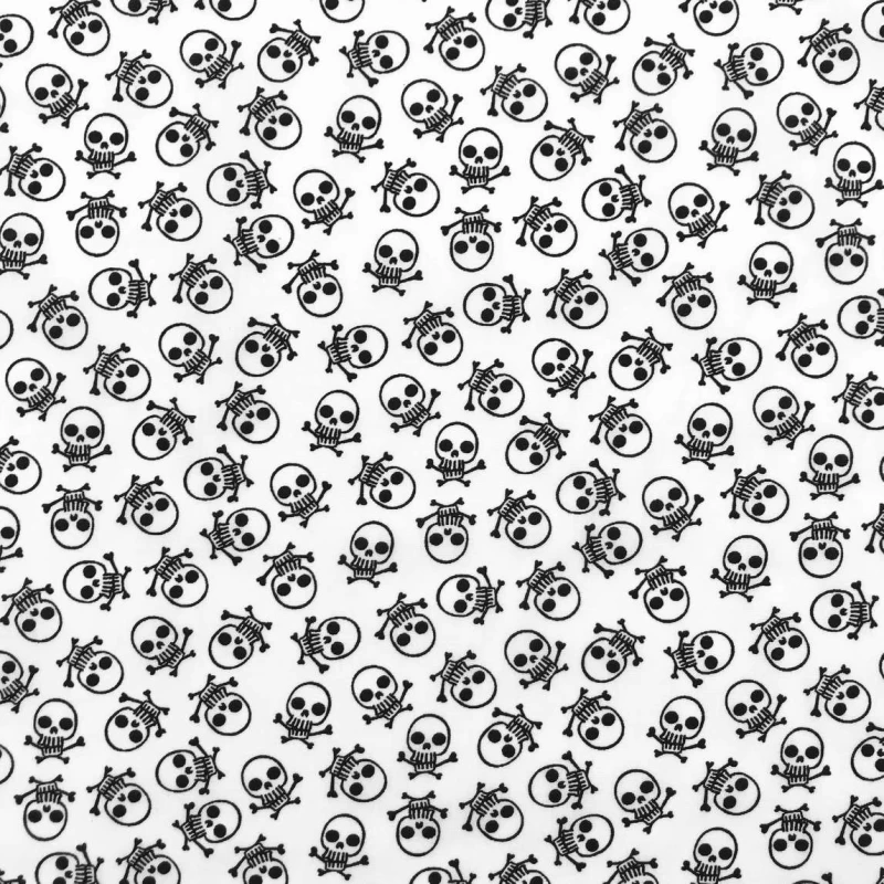 Tricoline Estampada - Caveira Fundo Branco - 100% Algodão - 1,50 Largura - Variante 1