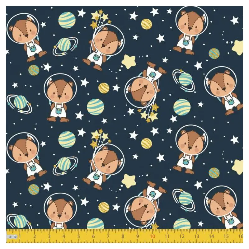 Tecido Tricoline - Ursinho Astronauta - 100% Algodão - 1,50M Largura - Variante 1