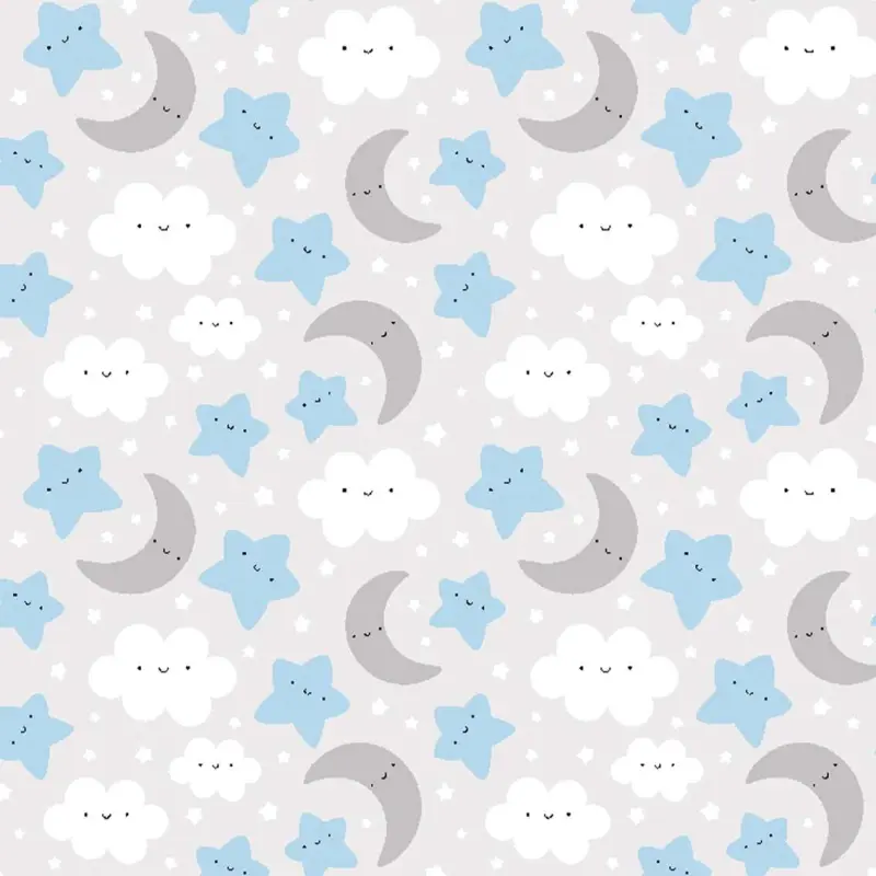 Tricoline Estampada - Céu Azul Branco E Cinza - 100% Algodão - 1,50M Largura - Variante 1