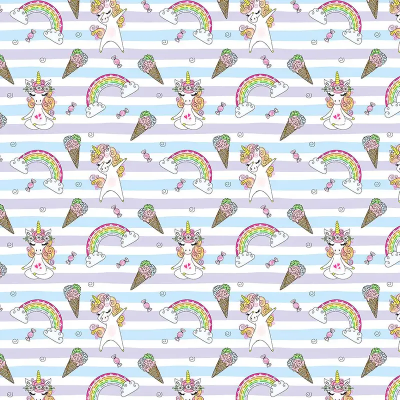 Tricoline Estampada - Unicórnio Listra Roxa/Azul - 100% Algodão - 1,50M Largura - Variante 1
