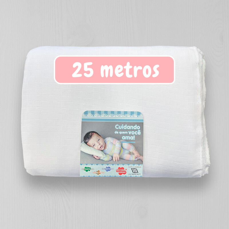 Peça De 25 Metros Fralda Mabber Quadriculada 100% Algodão 0,80M Largura - Branco