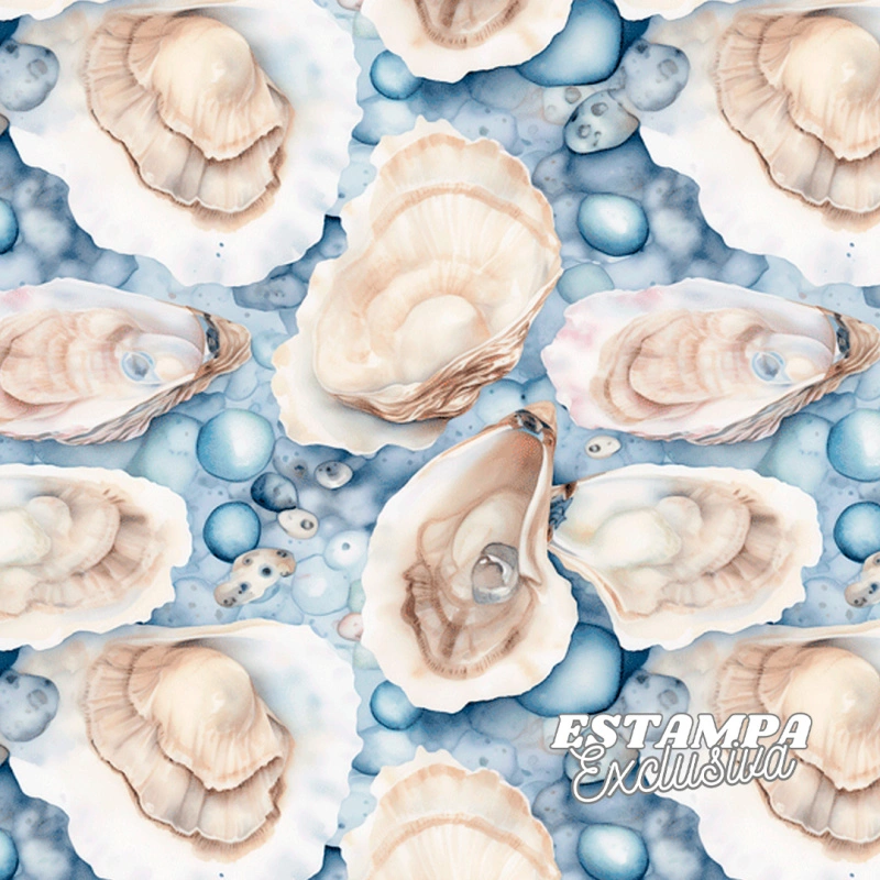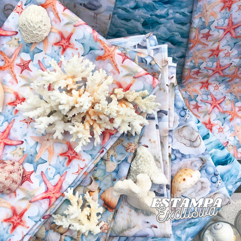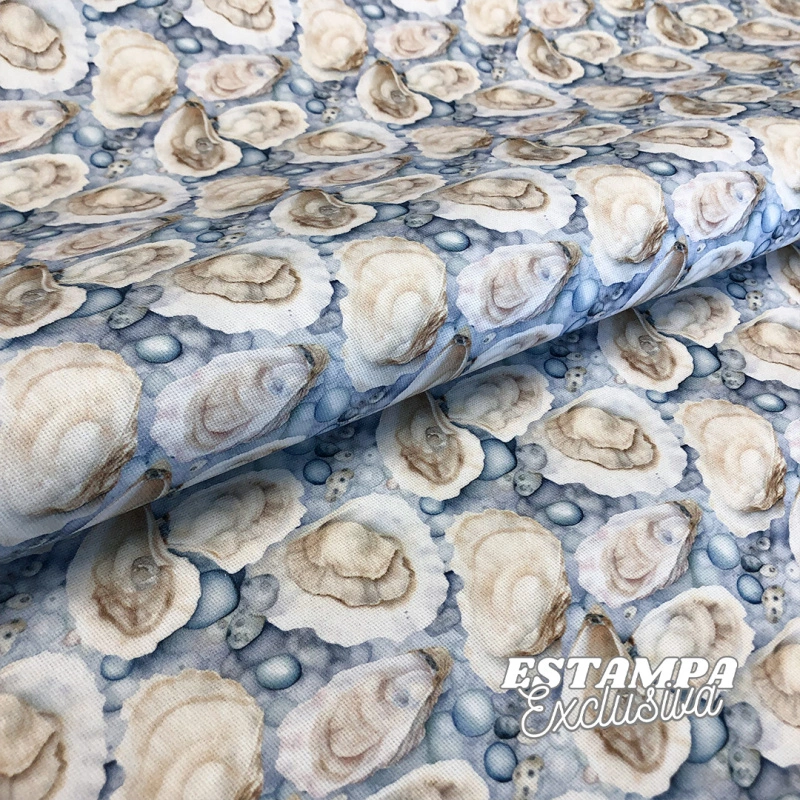 Sarja Impermeável Exclusiva Coleção Oceano De Requinte 100% Algodão 1,50M Largura - Ostras