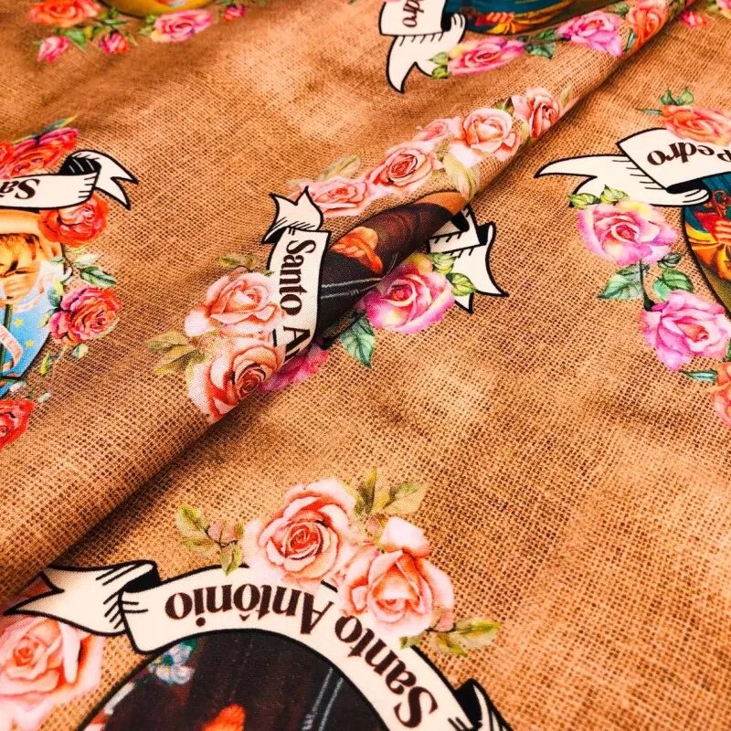 Tricoline Digital Sacro Santos Fundo Juta 100% Algodão - Variante 1