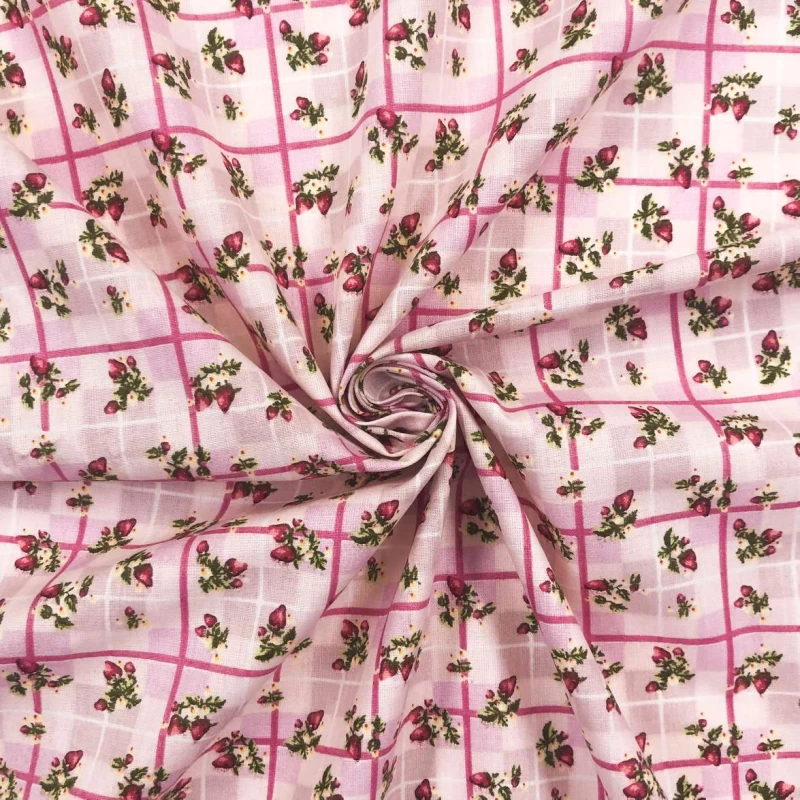 Tricoline Fernando Maluhy - Coleção Fresa Morango Com Xadrez - 100% Algodão - C02