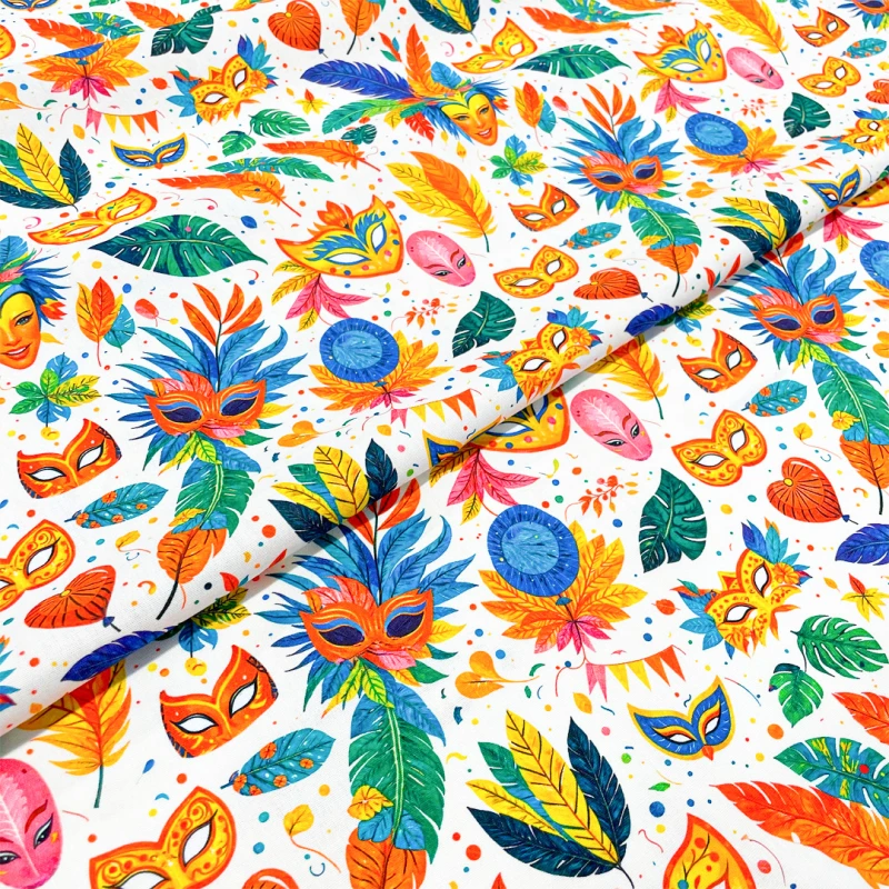 Tricoline Digital Máscaras De Carnaval 100% Algodão - Variante 1
