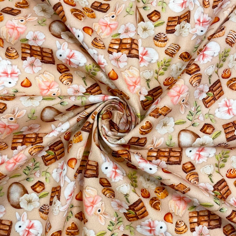 Tricoline Digital Páscoa Bunny Chocolate 1,50 Largura 100% Algodão - Variante 1