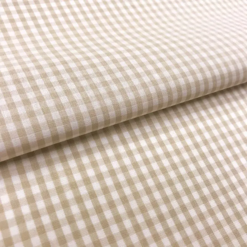 Tricoline Xadrez Fio Tinto - Médio - 100% Algodão - Bege