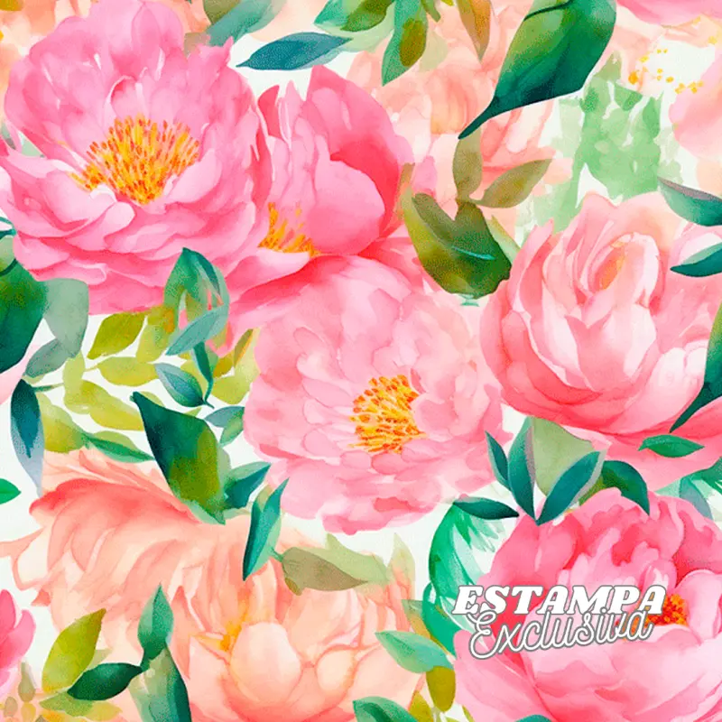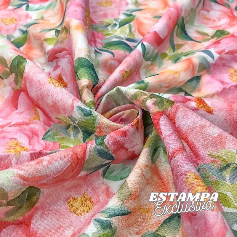 Tricoline Exclusiva Coleção Jardim Aquarela 100% Algodão 1,50M Largura - Variante 4