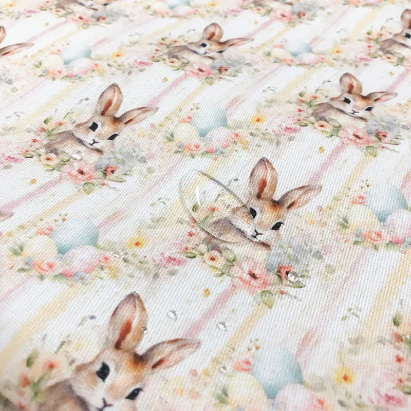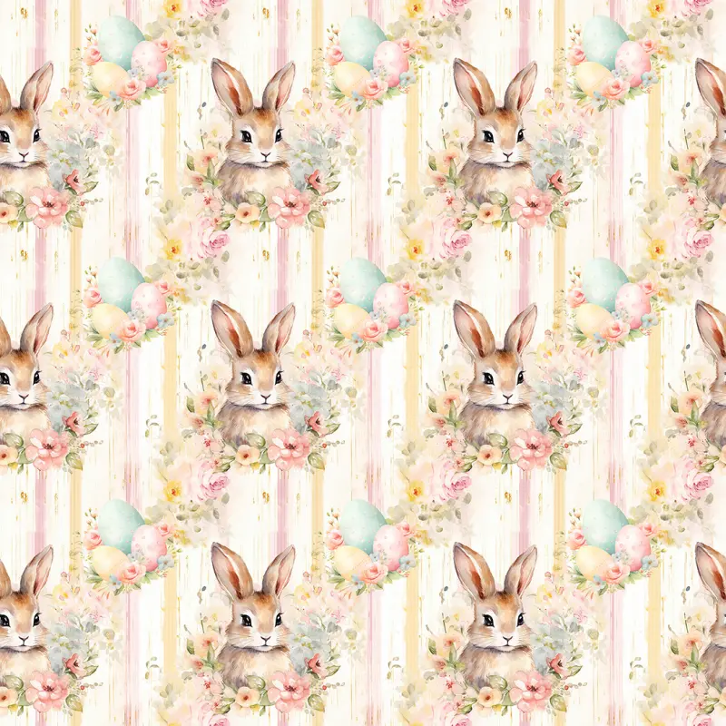 Sarja Impermeável Exclusiva Páscoa Fundo Listras Aquareladas 100% Algodão 1,50M Largura - Variante 1