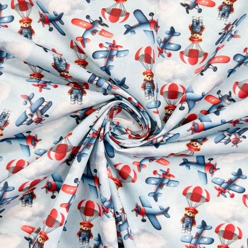 Tricoline Digital Urso Aviador 100% Algodão 1,50M Largura - Variante 1