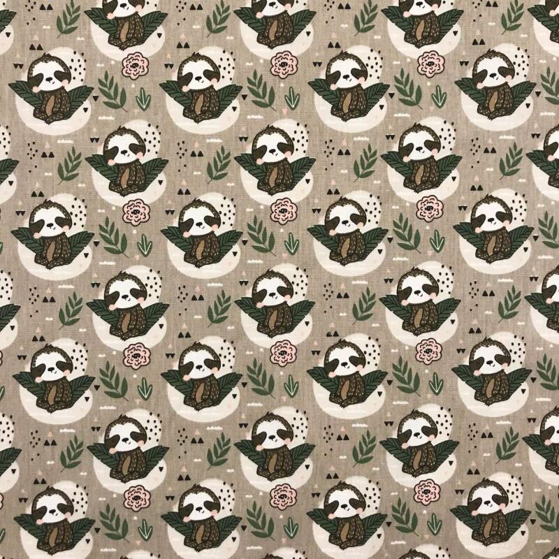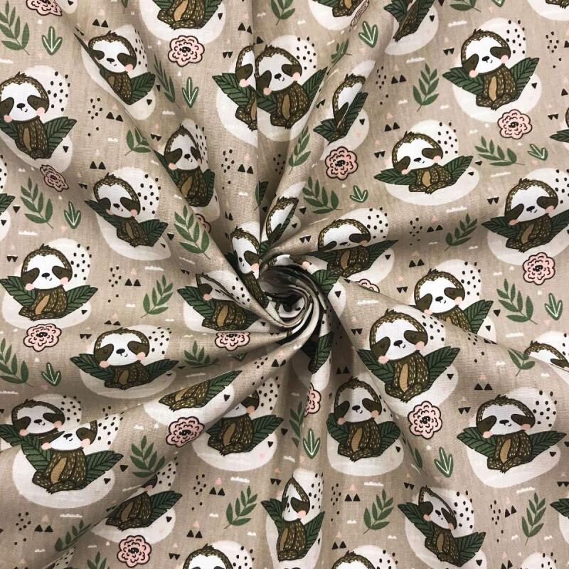 Tecido Tricoline - Bicho Preguiça - 100% Algodão - Variante 1