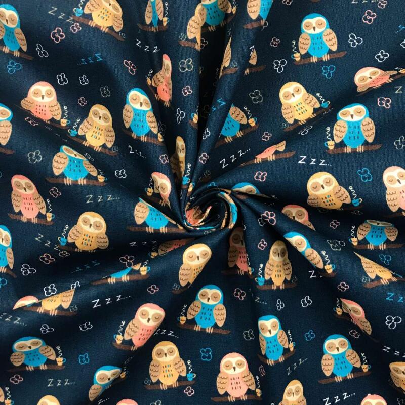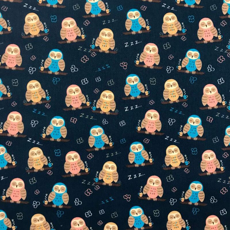 Tecido Tricoline - Coruja Dorminhoca - 100% Algodão - Variante 1