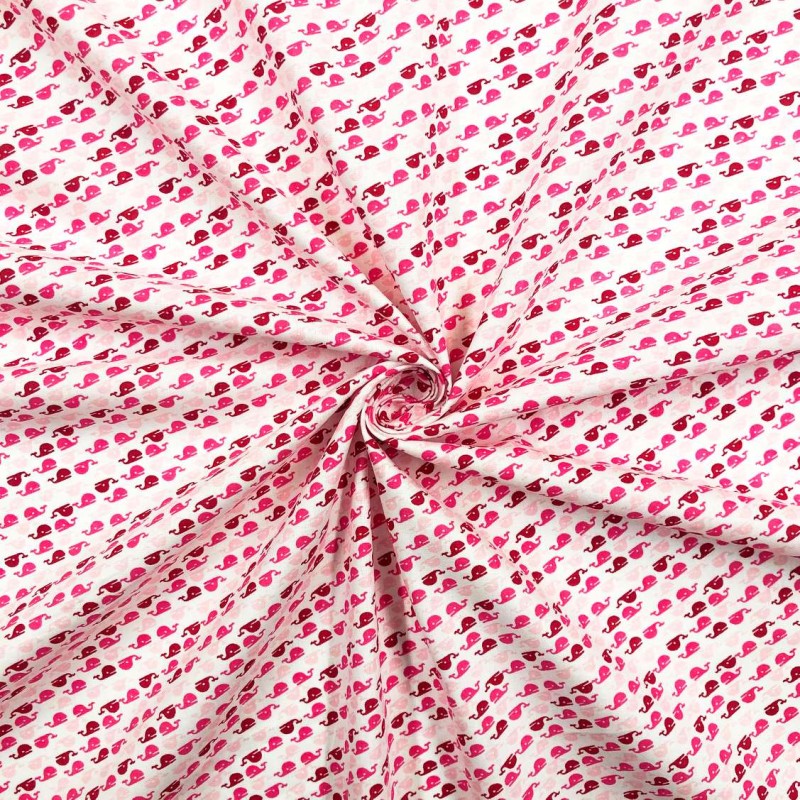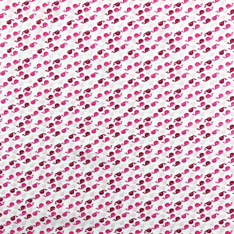 Tricoline Estampada - Baleia - Promoção - Rosa