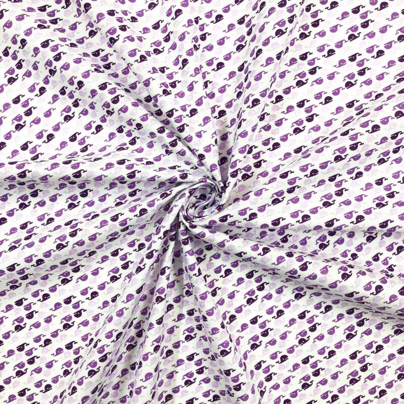 Tricoline Estampada - Baleia - Promoção - Roxo