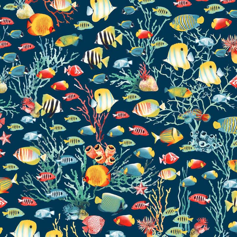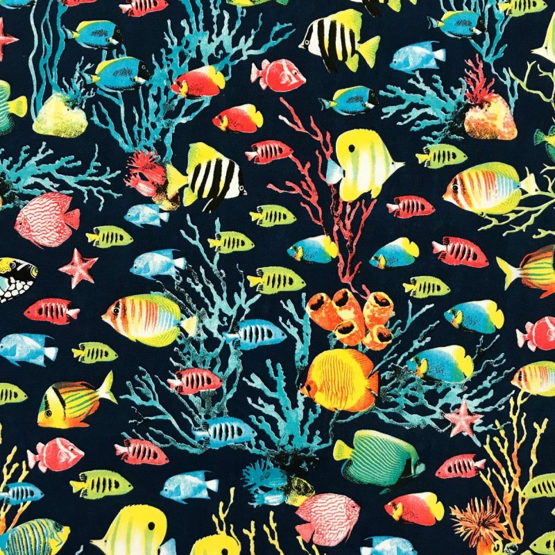 Tricoline Estampada - Mar Azul Marinho - 100% Algodão - 1,50 Largura - Variante 1