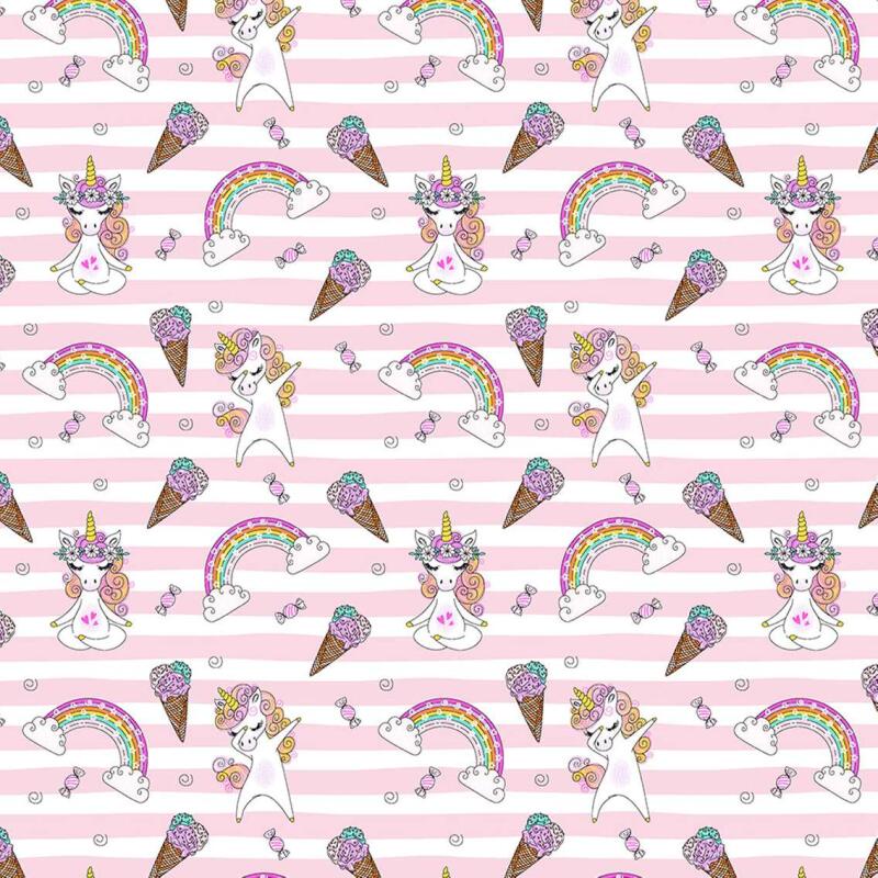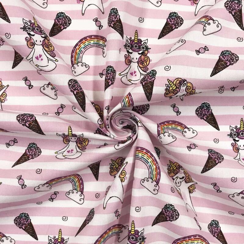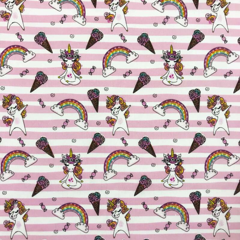 Tricoline Estampada - Unicórnio Listra Rosa - 100% Algodão - 1,50M Largura - Variante 1