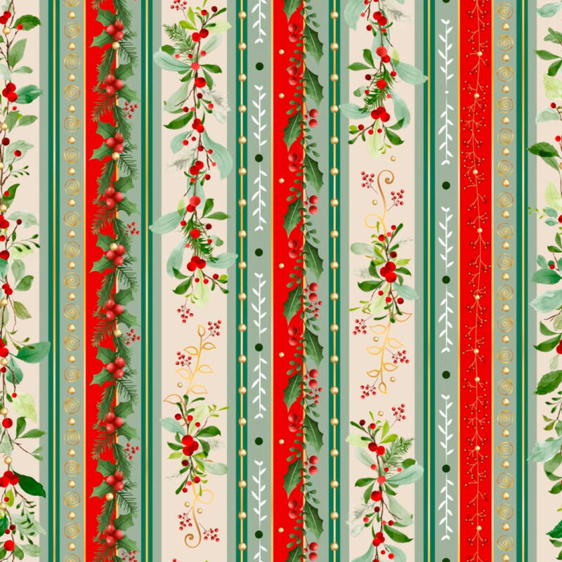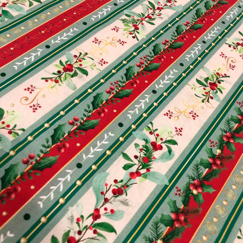 Tricoline Digital Barrado Azevinhos De Natal 100% Algodão - Variante 1