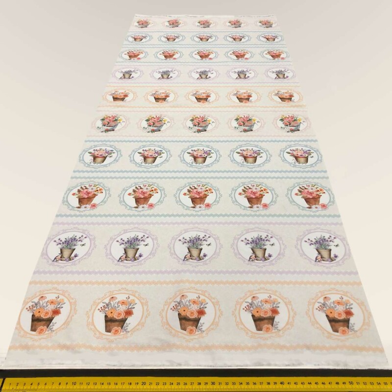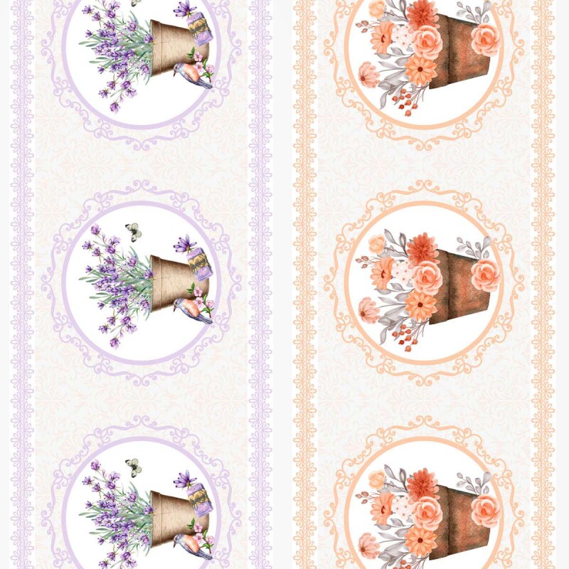 Painel Tricoline Digital Barrado Moldura Floral 0,55 X 1,50M 10 Faixas - Variante 1